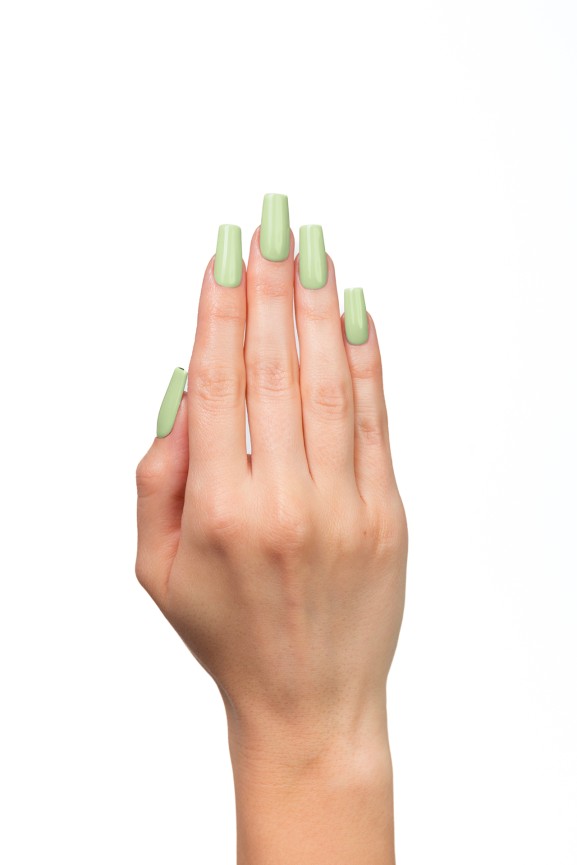 Otul swoje paznokcie nutą naturalnej elegancji w odcieniu pistacjowej zieleni.